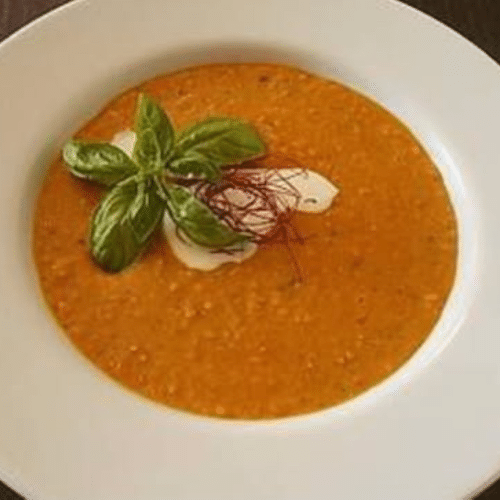 Pouletfleisch an einer cremigen Tomatensauce mit wenig Rahm, Butter und Gewürzen Serviert mit Reis